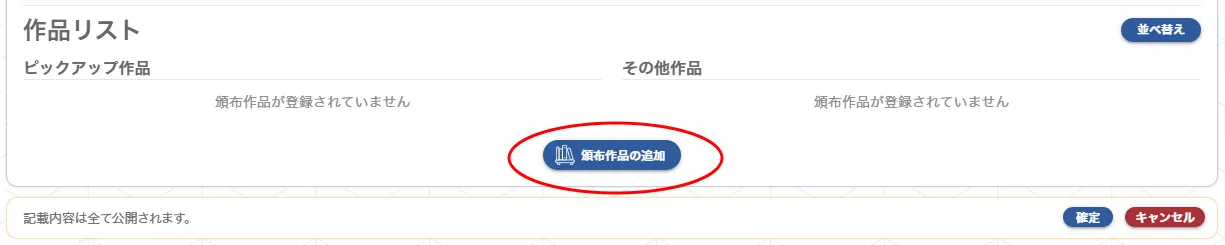 自サークル編集画面の「頒布作品の追加」をクリック。