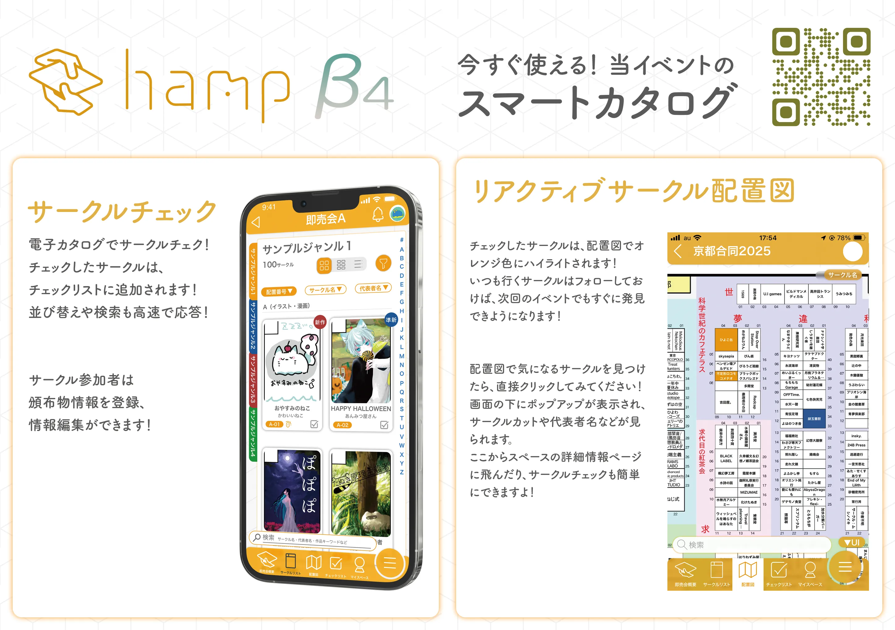 hampでは、サークルカットの差し替えのほか、サークルの頒布情報を掲載することができます。