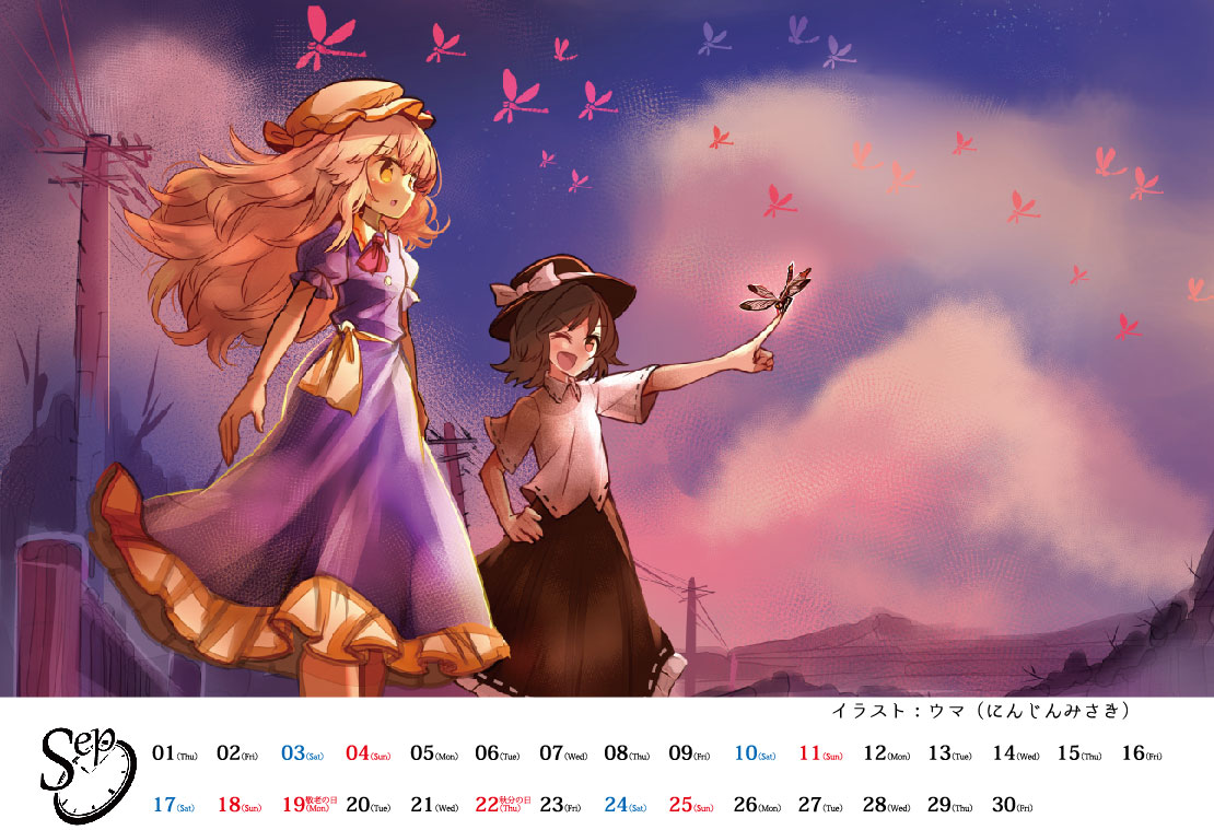 12名の作家様がそれぞれの月を担当し、幻想郷(阿求・小鈴)と外の世界(秘封倶楽部)の四季をテーマに2枚ずつ描き下ろしていただきました。それぞれの世界で刻まれる四季の変化を、是非お手にとってお確かめいただけますと幸いです。